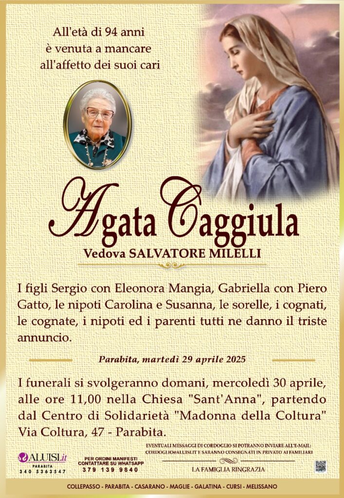 Agata Caggiula – Vedova Salvatore Milelli – Parabita