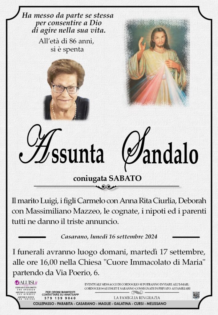 Assunta Sandalo – coniugata Sabato – Casarano