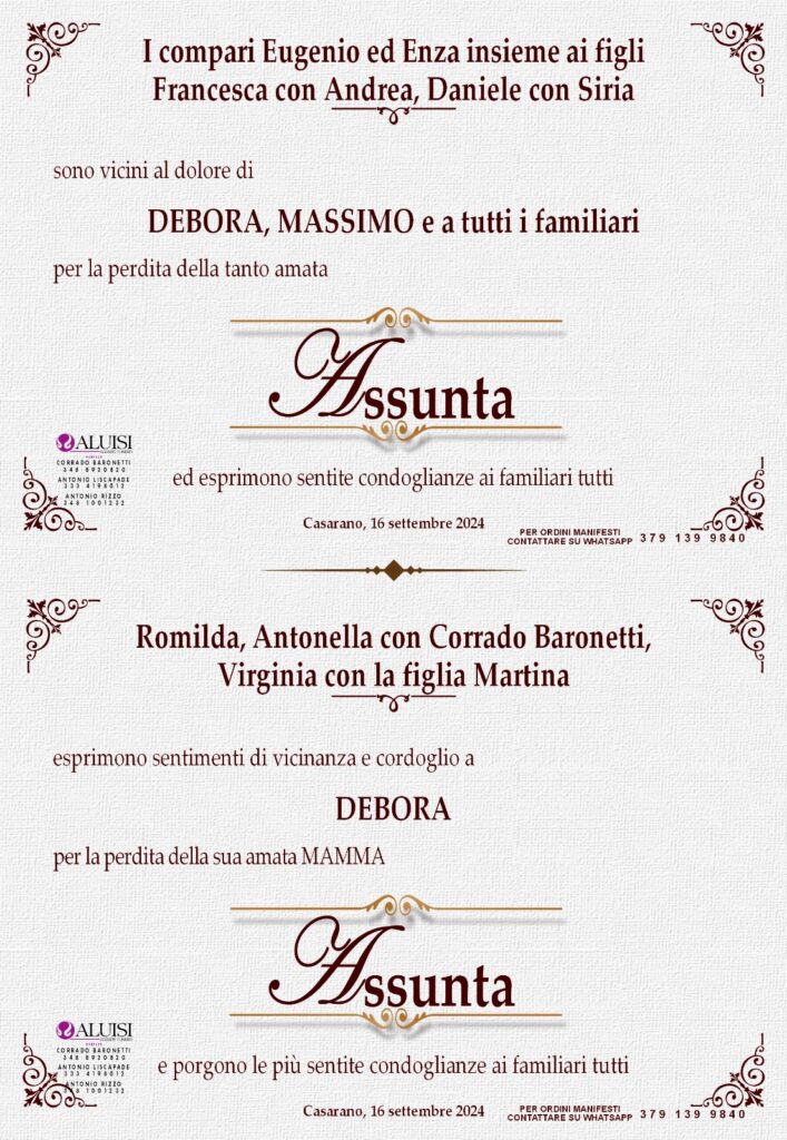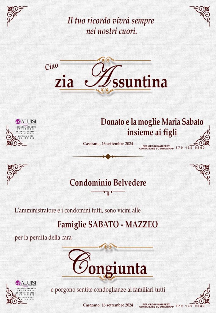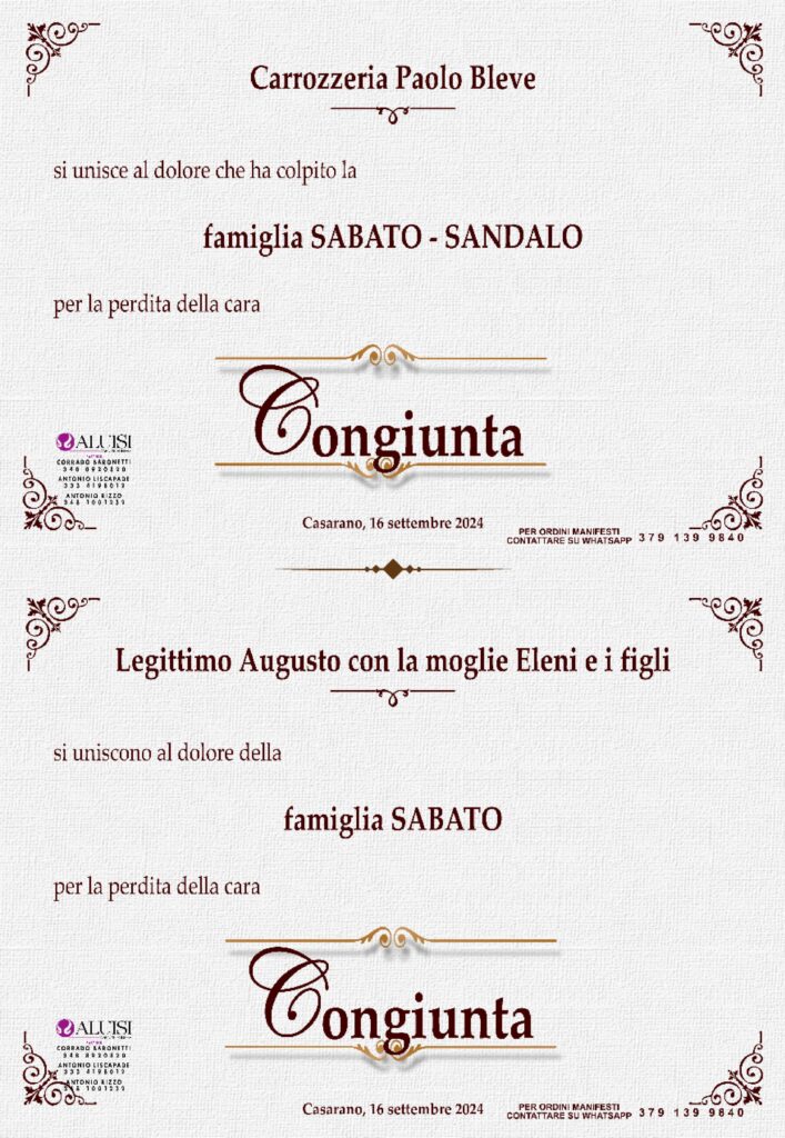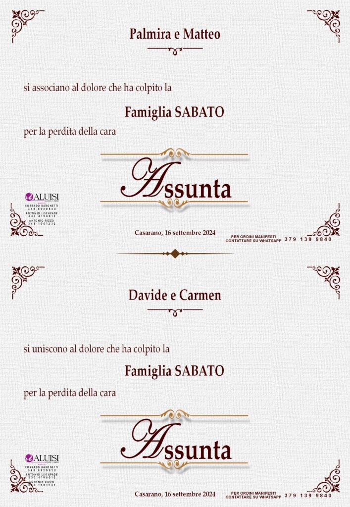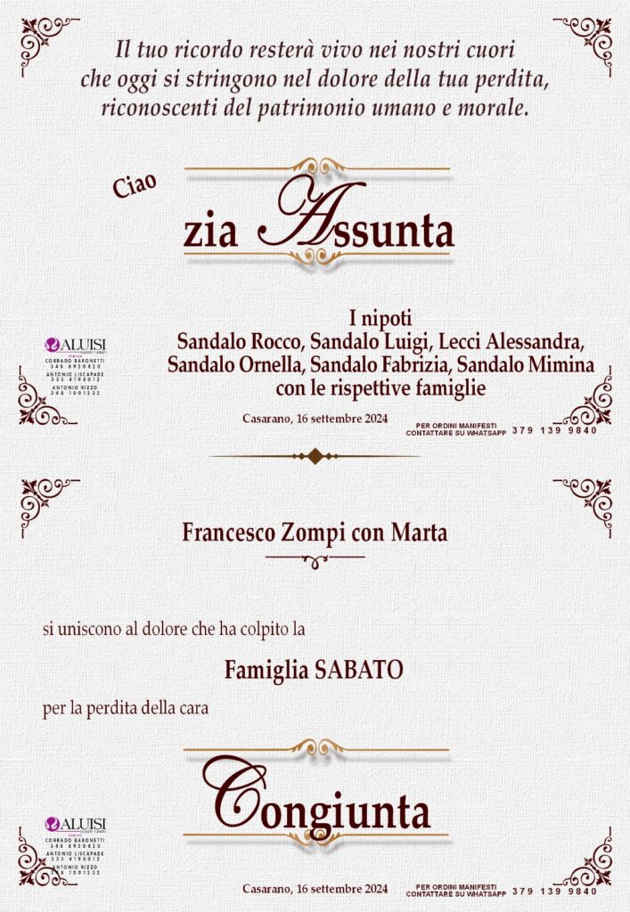 • Assunta Sandalo – coniugata Sabato – Casarano