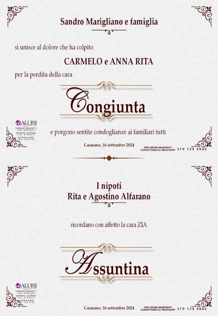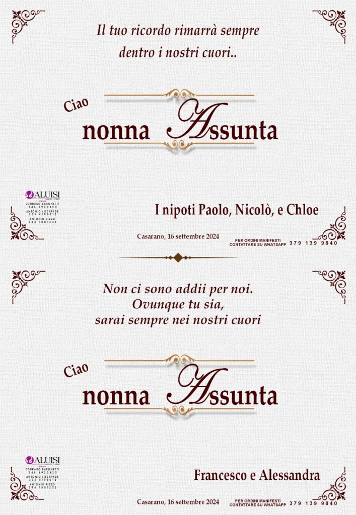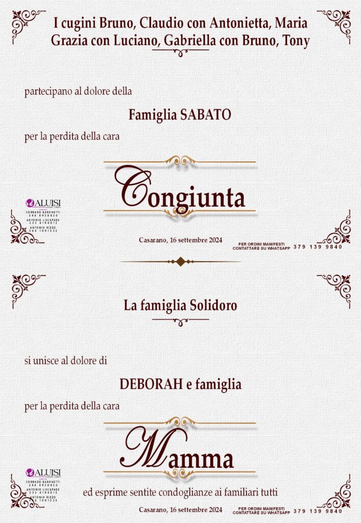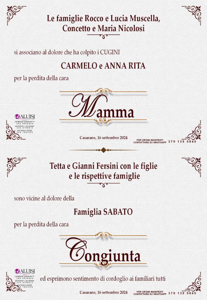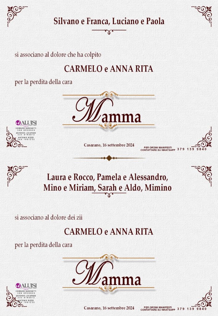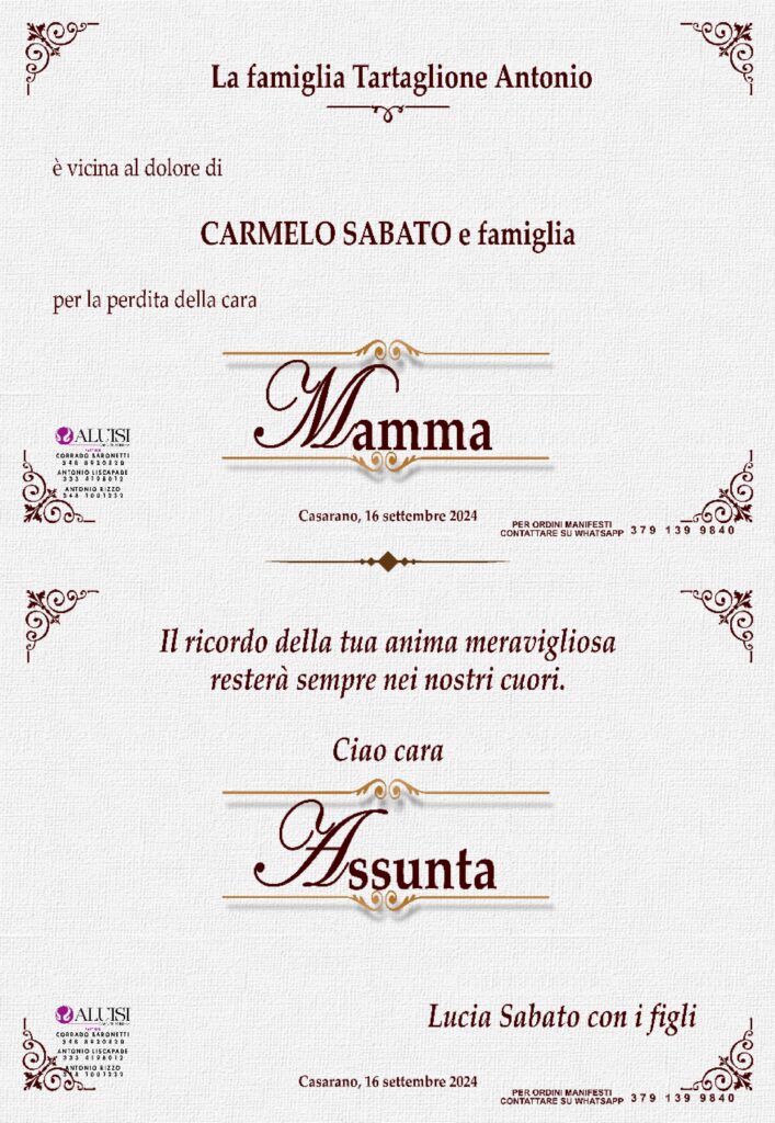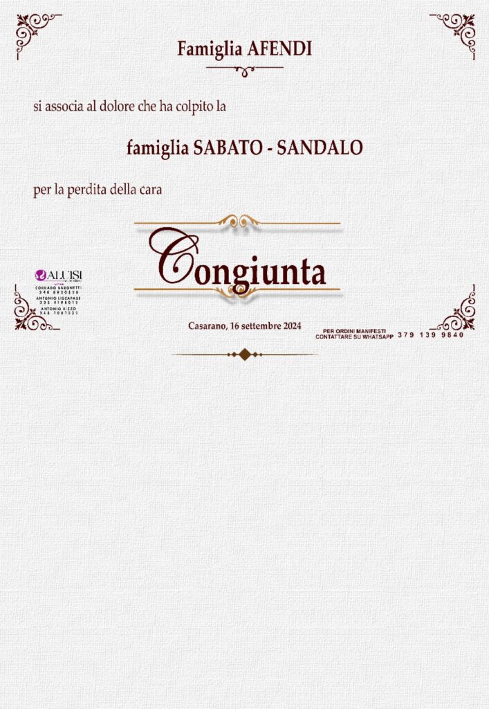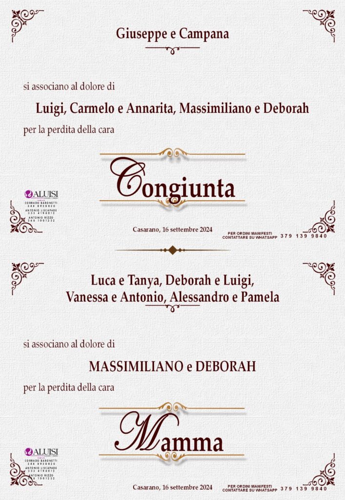 POTETE INVIARE MESSAGGI DI CORDOGLIO ALLA FAMIGLIA COMPILANDO IL MODULO IN BASSO.