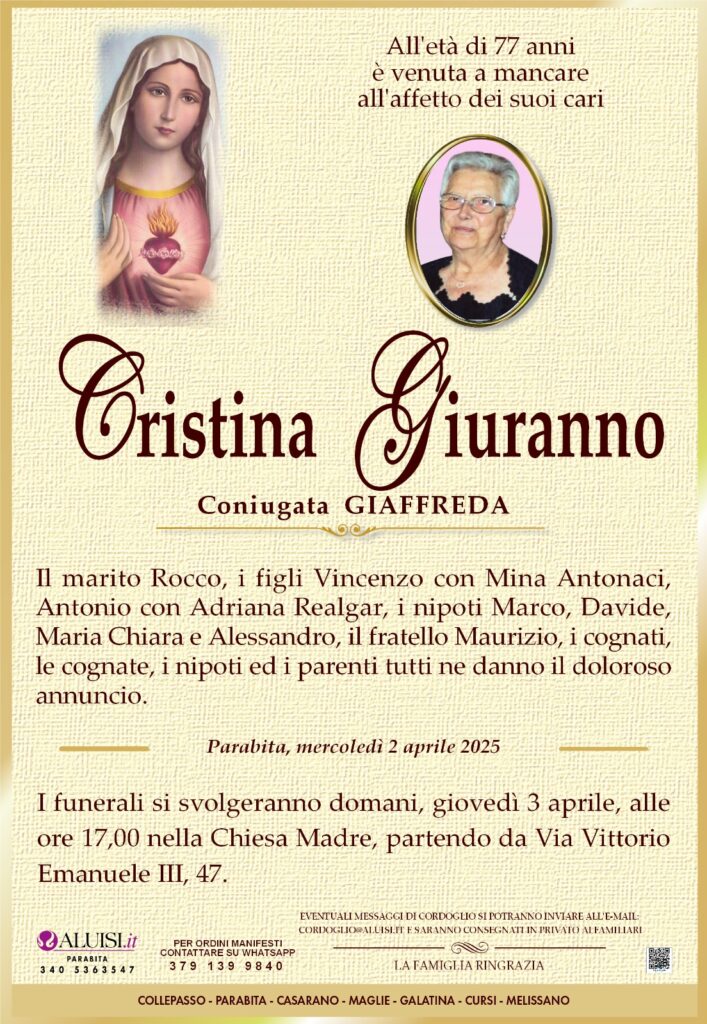 Cristina Giuranno – coniugata Giaffreda – Parabita