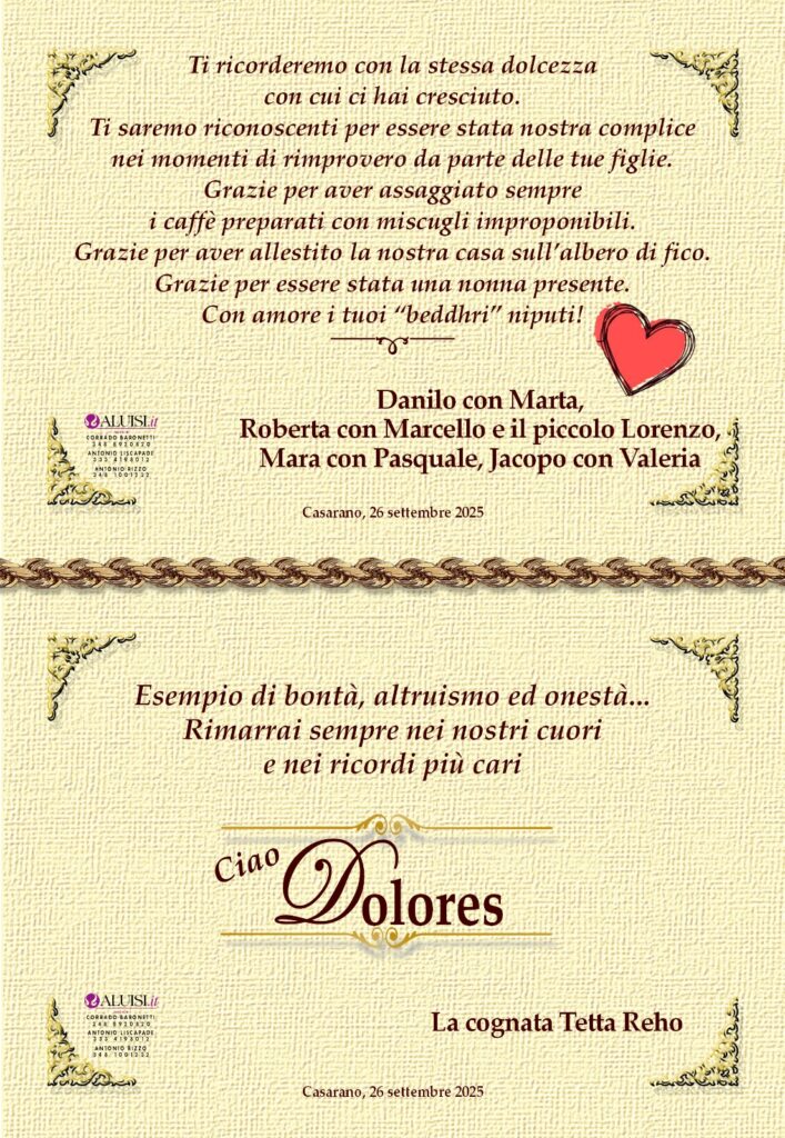 Dolores Corsano – vedova Ferilli – Casarano