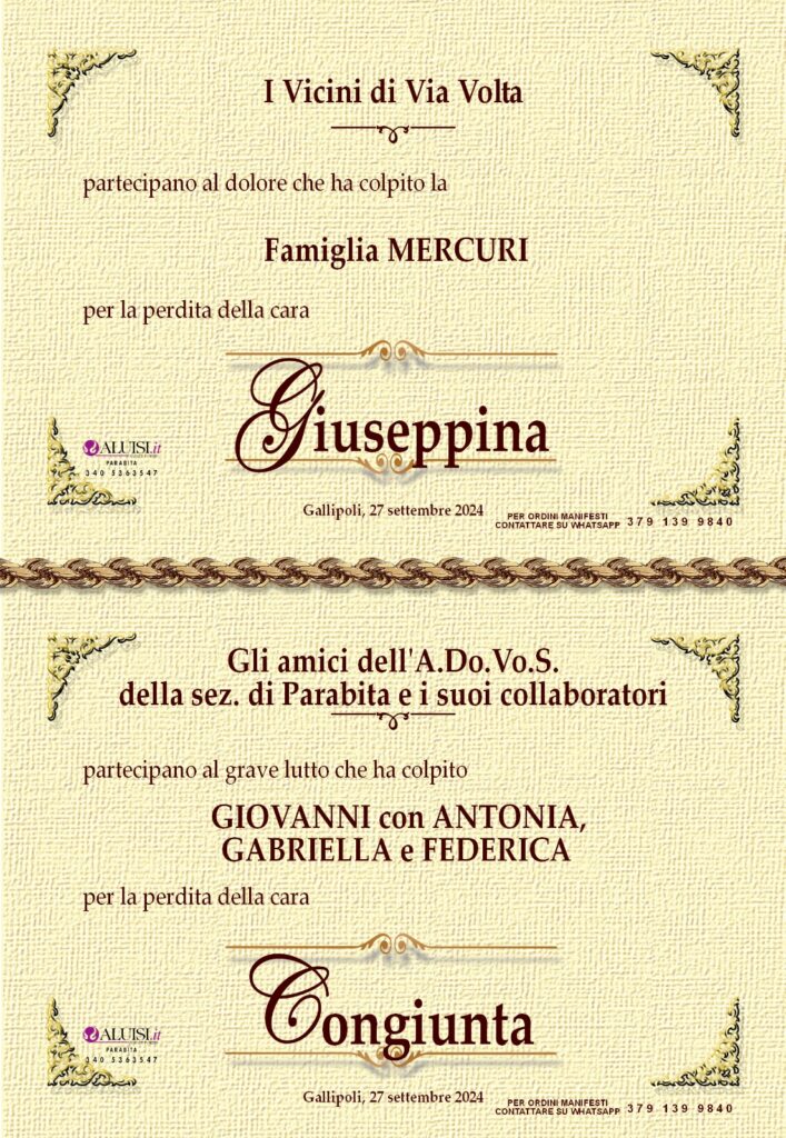 Giuseppina Cataldi – vedova Salvatore Mercuri – Gallipoli