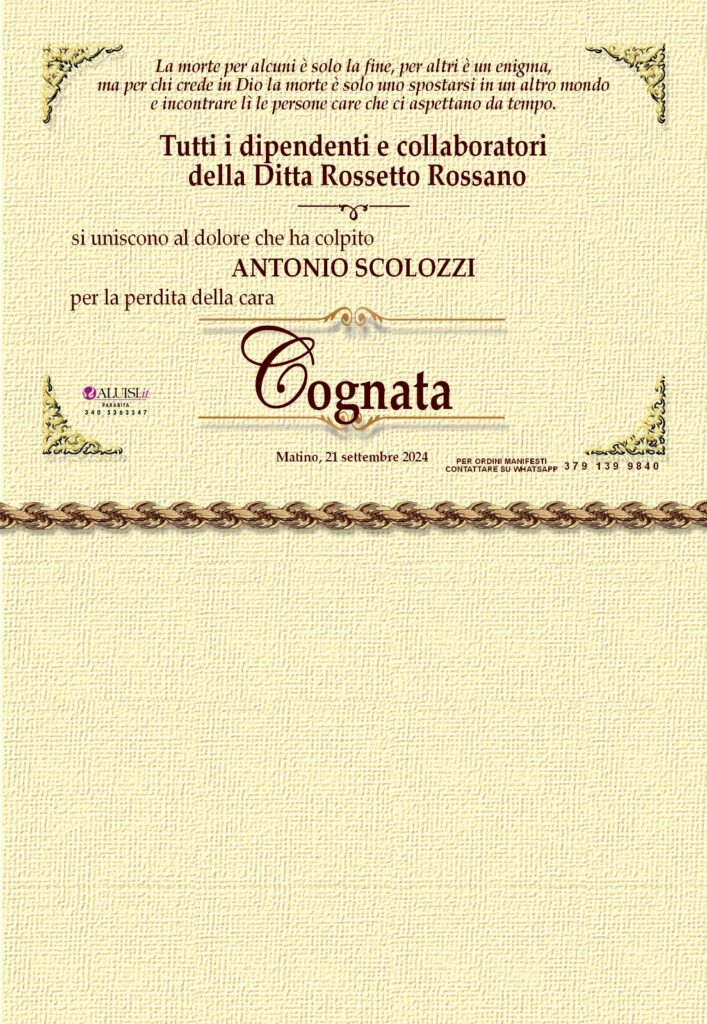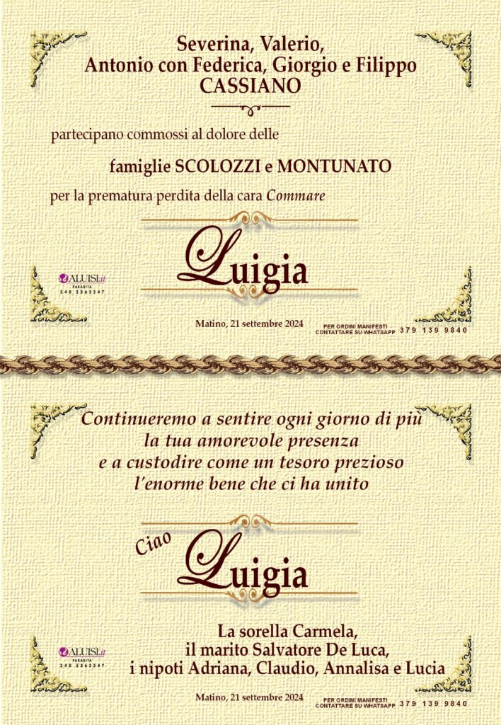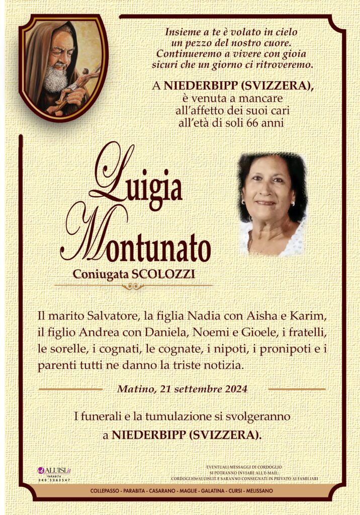 • Luigia Montunato – Coniugata Scolozzi – Matino – NIEDERBIPP (SVIZZERA)