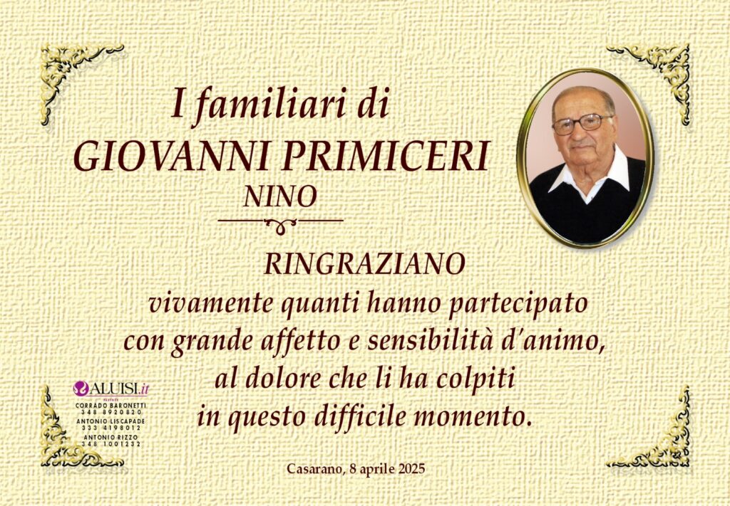Ringraziamenti Paese Giovanni Primiceri (Nino) – Casarano