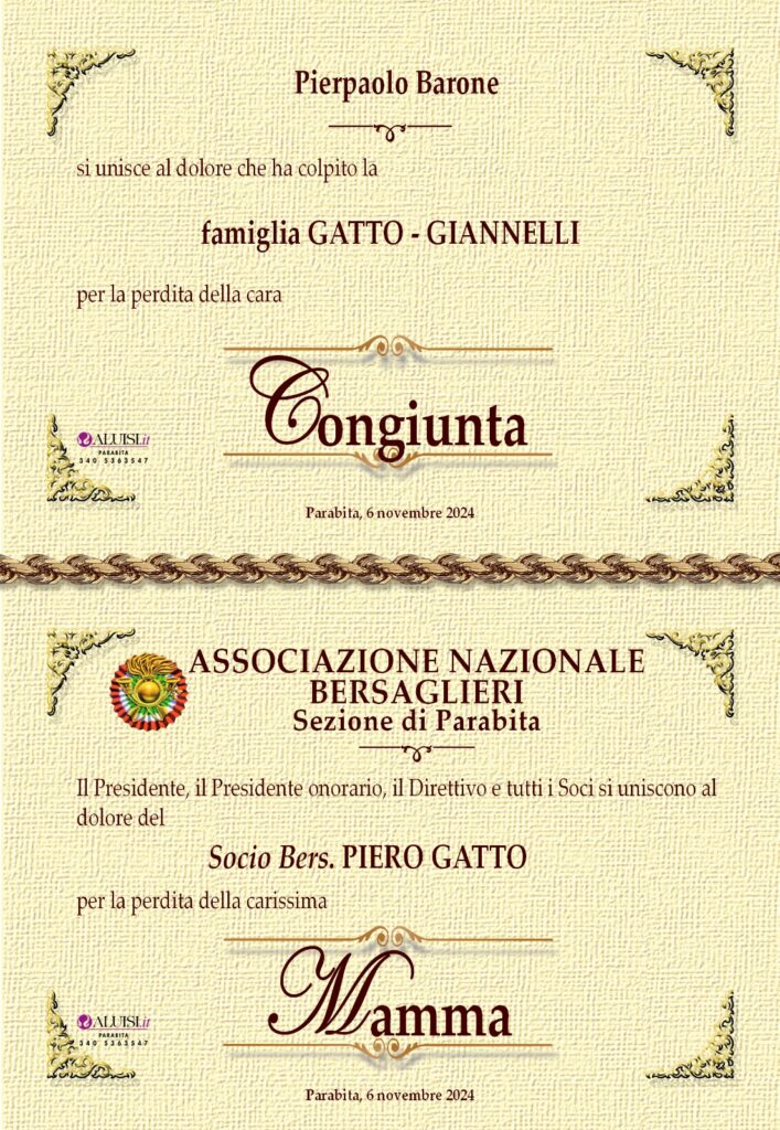 • Lucia Giannelli – Vedova Tommaso Gatto – Parabita